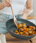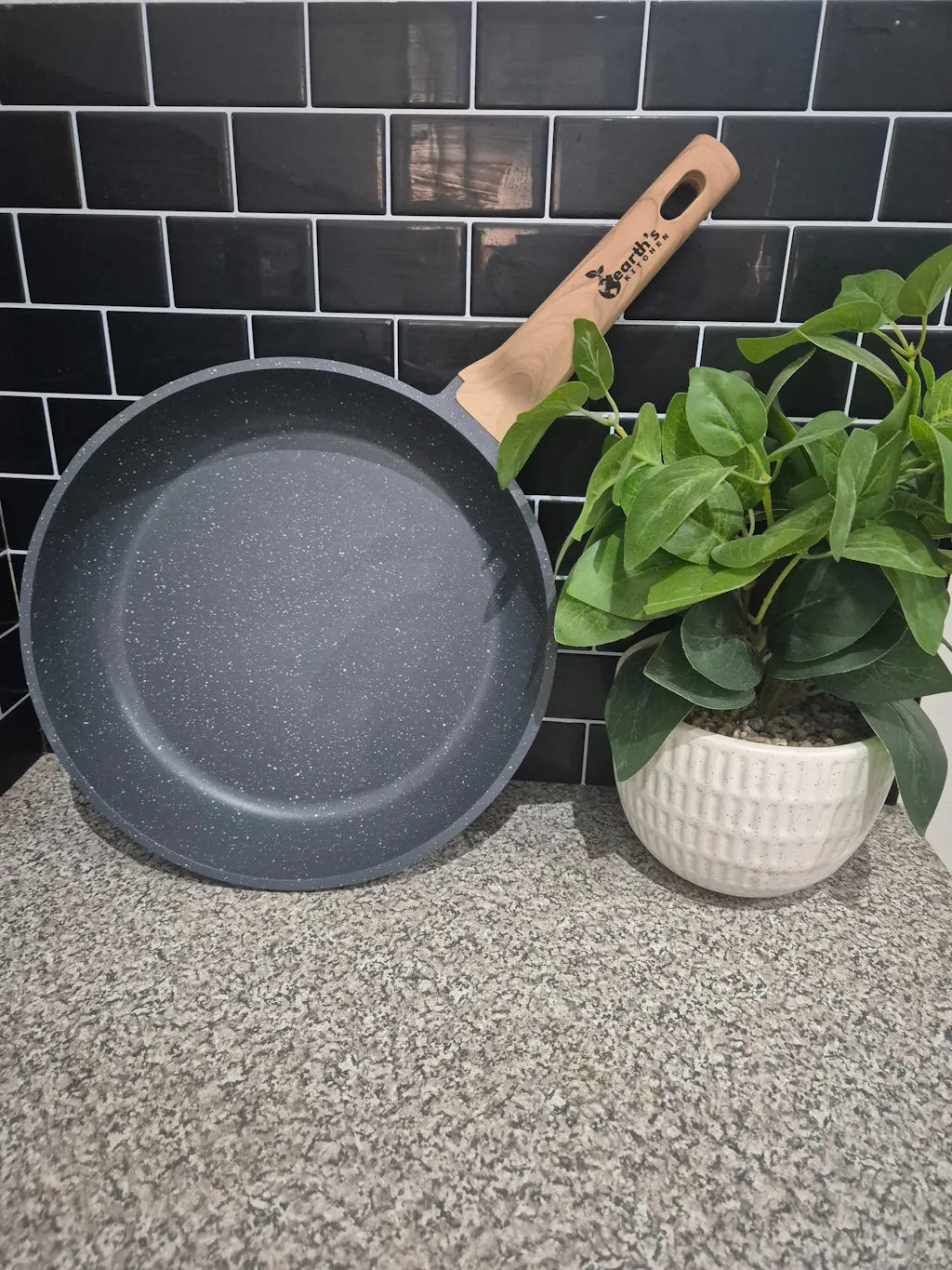 Our cookware is made with a durable aluminium base for even heat distribution, and coated with a non-toxic, PFAS & PFOA-free granite surface that ensures safe, non-reactive, high-heat cooking.